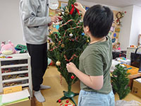 クリスマスツリーを飾りました。どんな風に飾りを付けるか、子どもたちとお話ししながら飾りました。