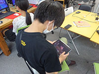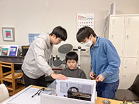 組み立てたら動作確認をします。パーツを付けたりコードをつないだり、子どもとスタッフで行ったのでとても緊張します…