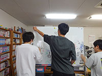 みんなが自由に絵を描けるホワイトボードがいっぱいになったのでリセットしました。1週間もしないうちに半分以上埋まります。
