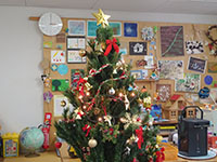 クリスマスツリーを飾りました。どんな風に飾りを付けるか、子どもたちとお話ししながら飾りました。