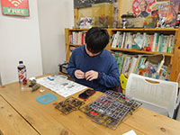 プラモデルを制作中。作るのがとても早くて一日で完成するときもあります。